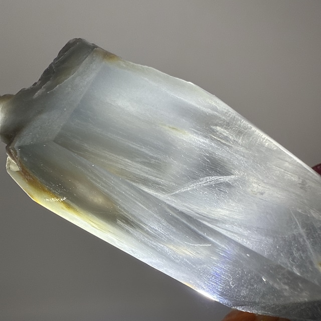 #26001 インドメルー産ヒマラヤ水晶ポイント サイズ:53.7g 56mm×29mm×25mm ヒマラヤ山脈の中でも特に神聖な地として知られる インド・メルー峰周辺で採掘された、希少な水晶ポイントです。 標高6,000mを超える過酷な環境下で育まれたメルー産水晶は、 澄み切った透明感と、内側から放たれるような瑞々しい輝きが最大の魅力。 一点一点が凛とした存在感を放ち、静かな強さと気品を感じさせてくれます。 結晶の成長過程で刻まれた自然の表情はすべて異なり、 同じものは二つとない、まさに一点物。 原石ならではの力強さと美しさを、存分にお楽しみいただけます。 インテリアとして空間を浄化する存在としてはもちろん、 瞑想やお守り石としてもおすすめです。