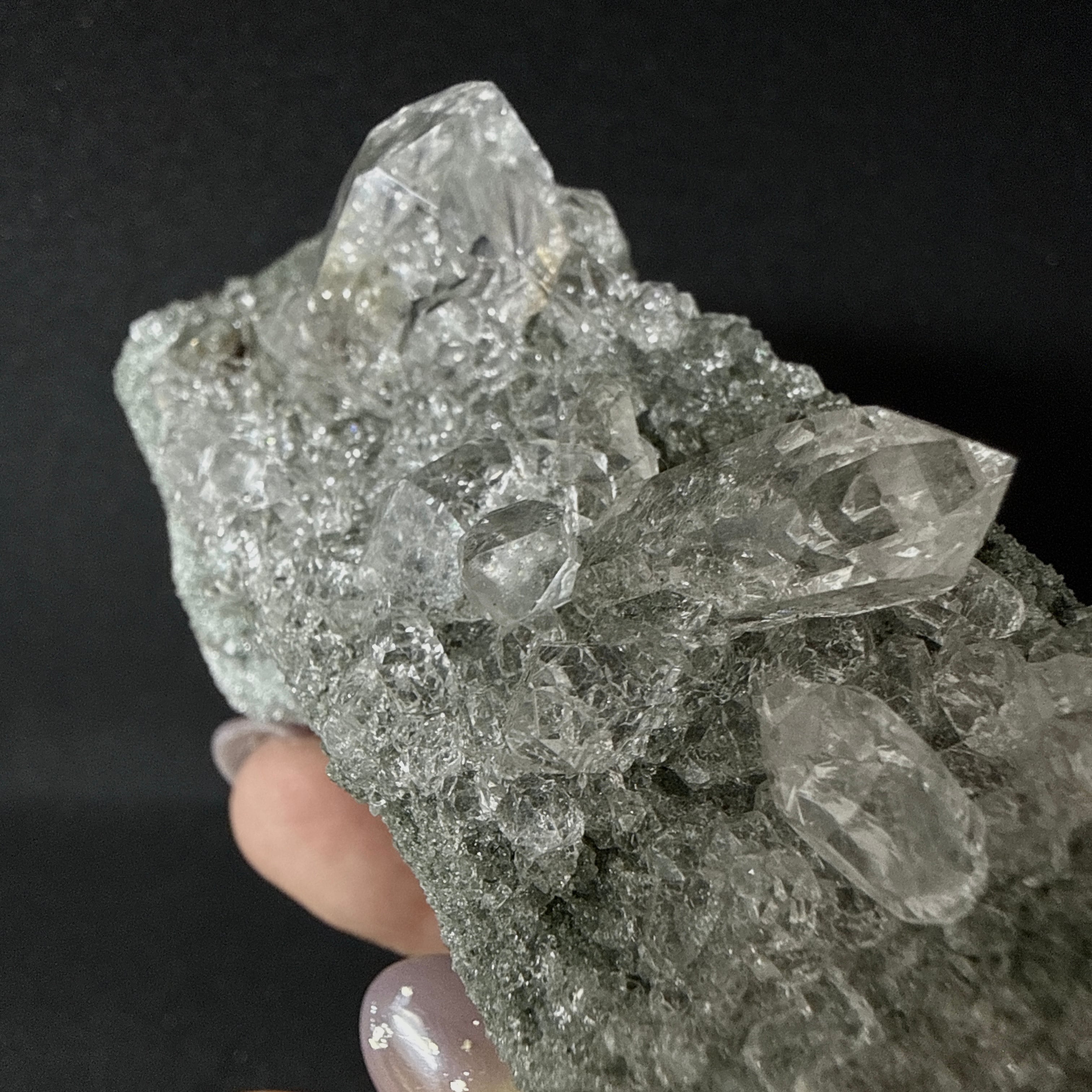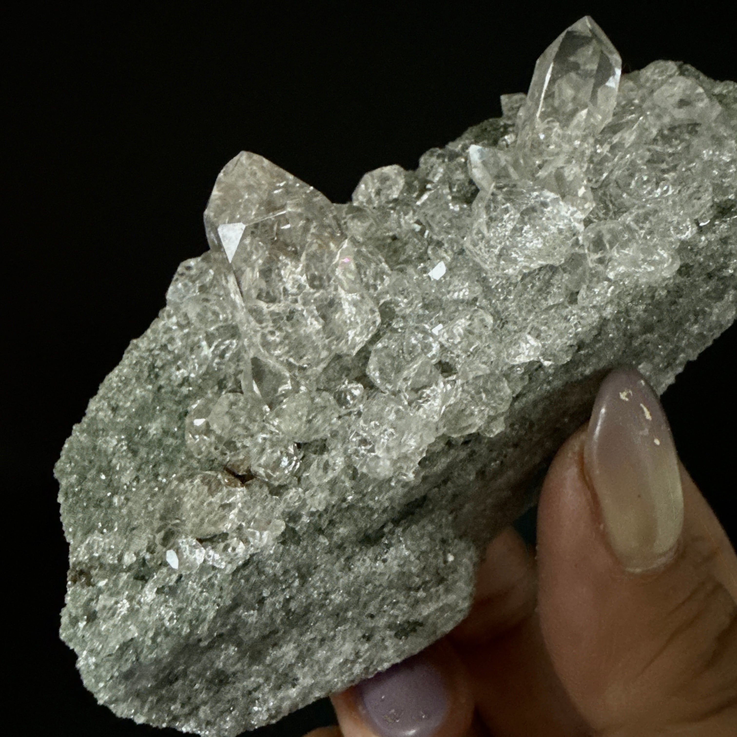 インドヒマラヤ、パールヴァディ渓谷の南に位置するマニハール村周辺の山で採掘された水晶です。高品質の美しい水晶が多く、クローライト(緑泥石)やルチルを内包した物も多く近年大変人気で世界中から注目の産地です。