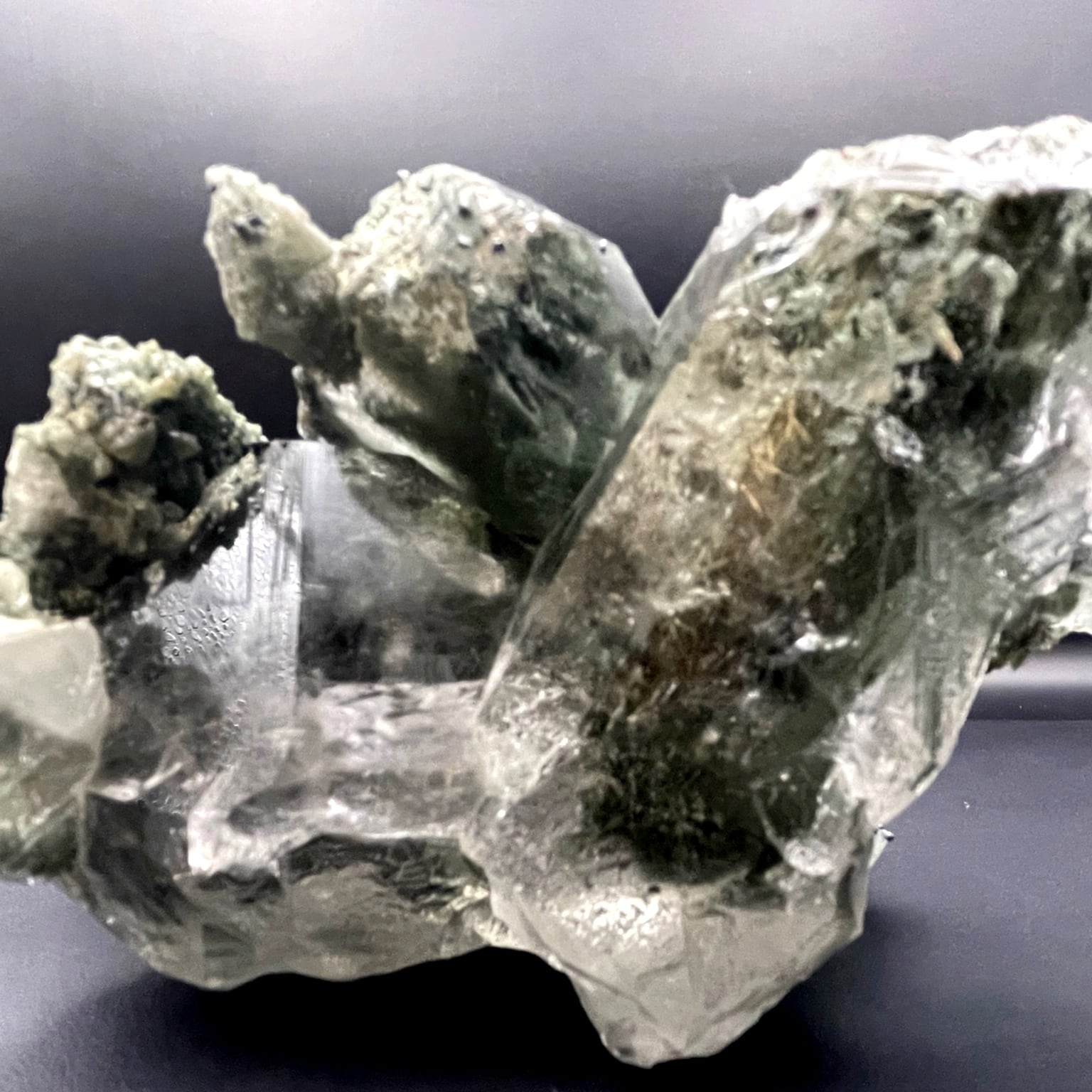 こちらのクラスターは、595gの大きさで、ルチル、クローライトを含む美しいガーデンクオーツが魅力です。