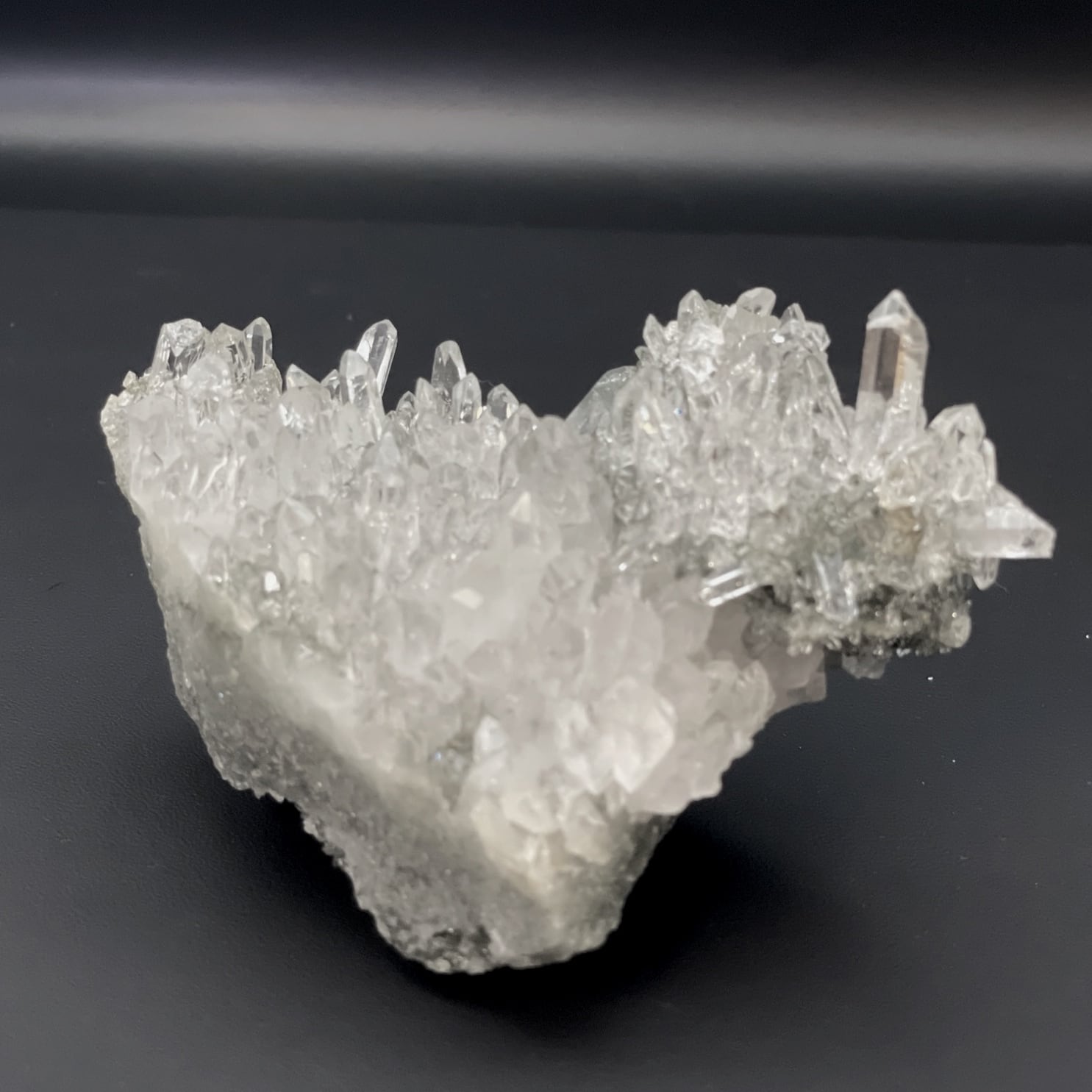 ヒマラヤ産のマニハール水晶クラスターは、キラキラと輝く美しい結晶が特徴です。この273gのクラスターは、豪華で華やかなインテリアとしてお部屋や店舗にぴったりです。