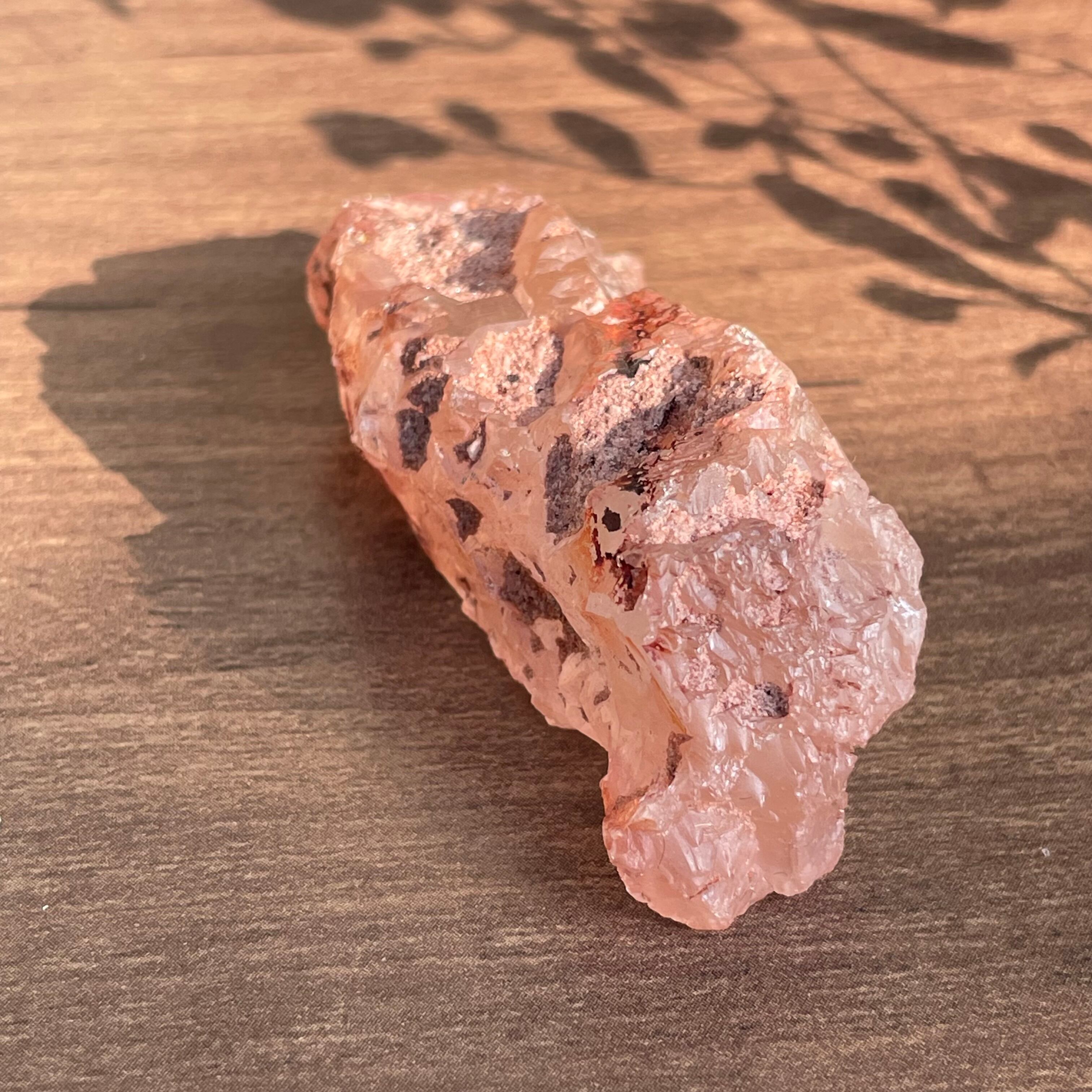 このクリスタルは鉄分が含有されている為、赤味を帯びたピンク色に発色し、神秘的で大変人気があります。