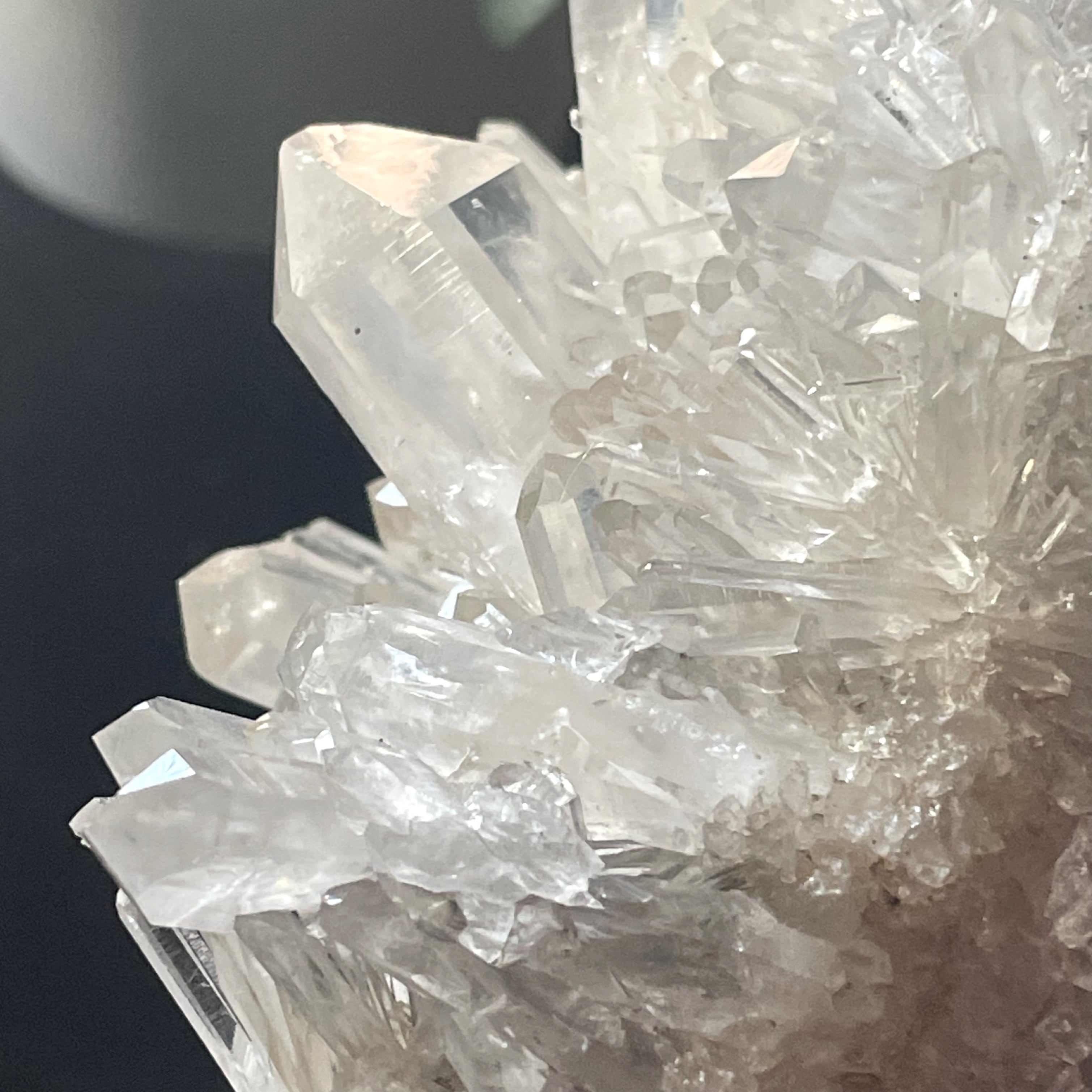 クラスタータイプは大変珍しく、結晶ひとつひとつに見どころあり、上品さも感じ取れる魅力的な群晶です。